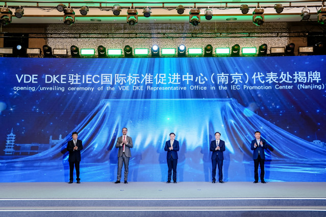 会上,德国电工委员会(DKE)为在IEC国际标准促进中心(南京)设立VDE代表处进行授牌。双方将共同围绕国际标准孵化、认证体系建设、国际互认机制等开展深入合作,协同构建开放、互信、共赢的标准化生态,为国际标准互认营造良好合作环境。