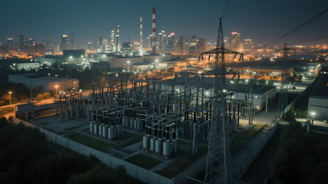 电能到达城市附近,会经降压变电站。这里的变压器将高电压降低,因家庭、工厂使用电压较低,如家庭用电 220V。降压后的电能通过配电系统分配到城市各处,点亮灯火、驱动机器。